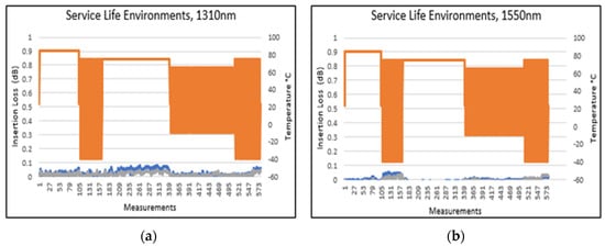 GR-326 service life insertion loss measurements (a) at 1310 nm; (b) at 1550 nm.