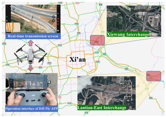 A UAV was deployed to capture aerial video footage of critical sections along the mainline, including deceleration lanes and diversion areas, at the investigated interchanges. For optimal data collection, the chosen locations should exhibit clear weather conditions with minimal wind to ensure unobstructed visibility. Selected shooting sections should also feature comprehensive and distinct signage and markings, free from traffic congestion, accidents, and facility maintenance, thereby minimizing disruptions to drivers.