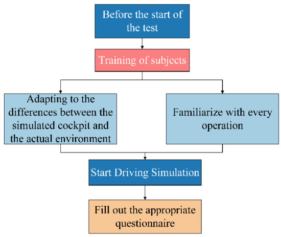 Figure 9 illustrates the simulation test process. Following the training session, the drivers were briefed on essential details concerning the road section. They were encouraged to adhere to the designated design vehicle speed while driving as closely as possible. Moreover, the subjects were instructed that if they discovered they had chosen the incorrect path, leading to an erroneous travel direction, they were not permitted to stop or turn around at the same location. To reduce potential testing errors, participants were advised to maintain minimal head movement while driving and to adjust their seating position beforehand.