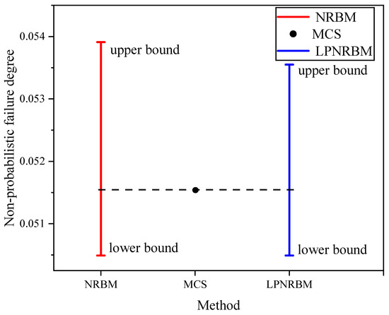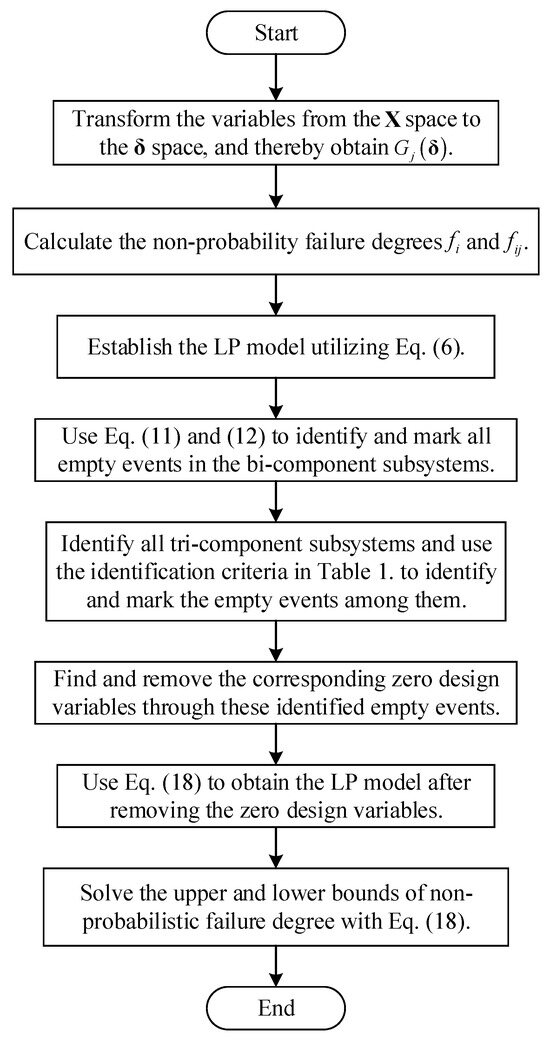 According to the LP model in Equation (6), the minimum and maximum of the objective function obtained are treated as the lower and upper bounds of the system non-probabilistic failure degree, respectively.