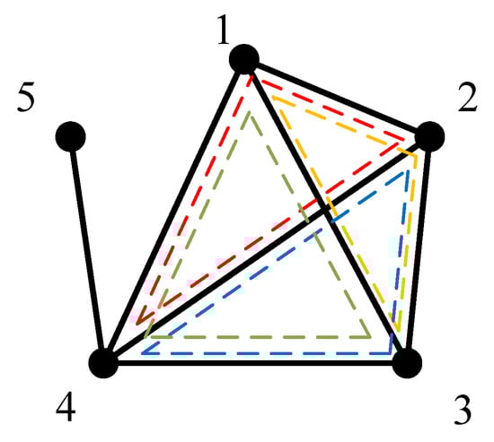 Let be the internal force of the i-th bar. As shown in Figure A2a, and can be obtained from the following two force equilibrium equations: