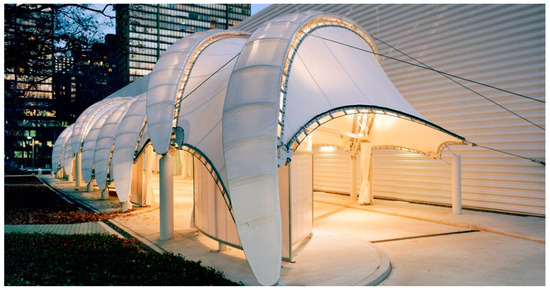 - United Nations Porte Cochere/FTL Design Engineering Studio, 2011. ArchDaily. ISSN 0719-8884. Available online: https://www.archdaily.com/101674/united-nations-porte-cochere-ftl-design-engineering-studio (accessed on 4 July 2024).