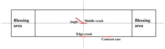 During the stretching process, the length of the defect changes very little, while the width varies and cannot be quantified. Thus, the formula for calculating the bearing capacity can be approximated, as shown in Equation (3), where is the parameter of the tip stress, which should be determined by a test.