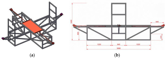 Schematic diagram of self-made test device. (a) Initial crack location of the specimen. (b) Device dimension diagram.