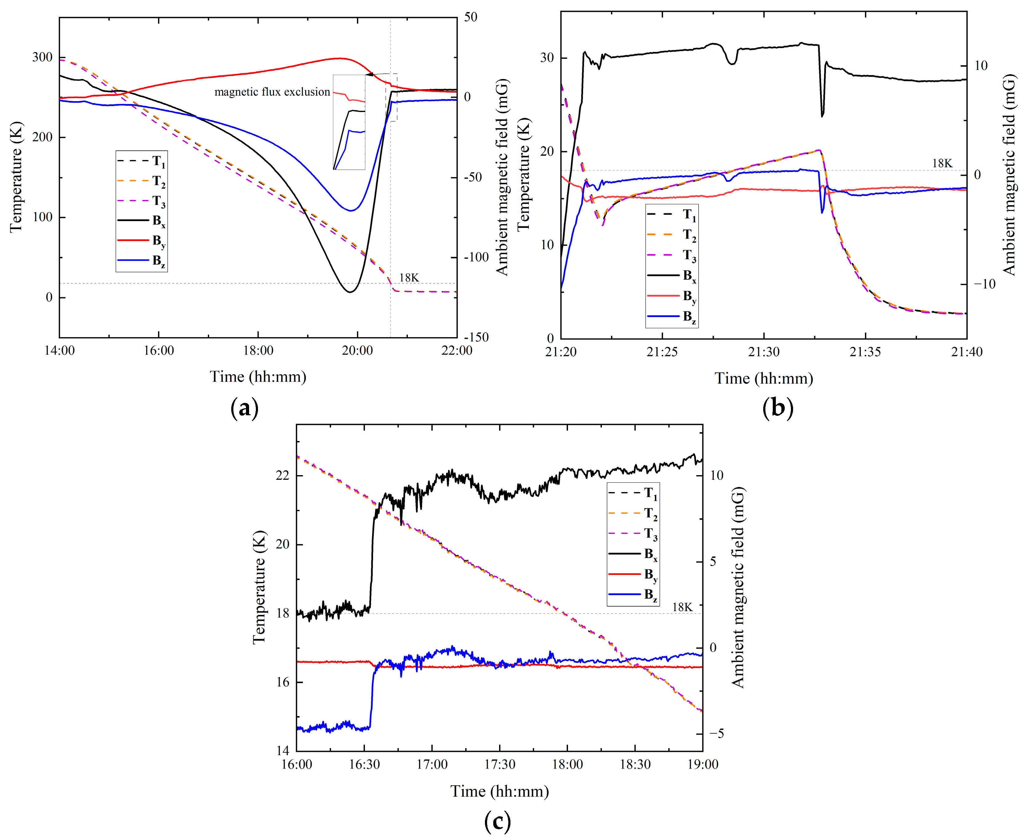 | Cooldown | Cooling Rate/ K/min | Temperature Gradient/K/m | /mG | /mG | /mG |