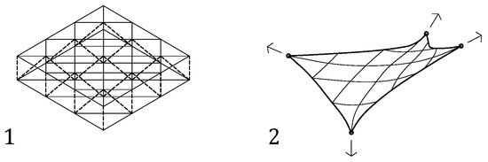 That said, in shell structures, stiffness is achieved through shape. Their geometry directly derives from their flow of forces and defines their load-bearing behavior and lightness [11]. On the other hand, lattice spatial structures achieve resistance through cross-section. Being multiple-layer structures, the very composition of the sheet has a lever arm that stiffens them. By not being so form-dependent, the range of application of lattices is considerably wider, and that makes them appealing as the scope of this work.