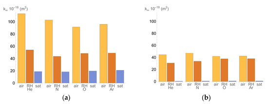 To calculate the permeability coefficient, Equation (1) is used, considering each gas’s respective dynamic viscosities, as shown in Table 2.