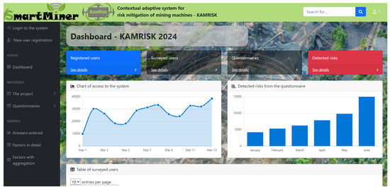 User interface of the DSS for mitigating the risks of the operation of mining machines.