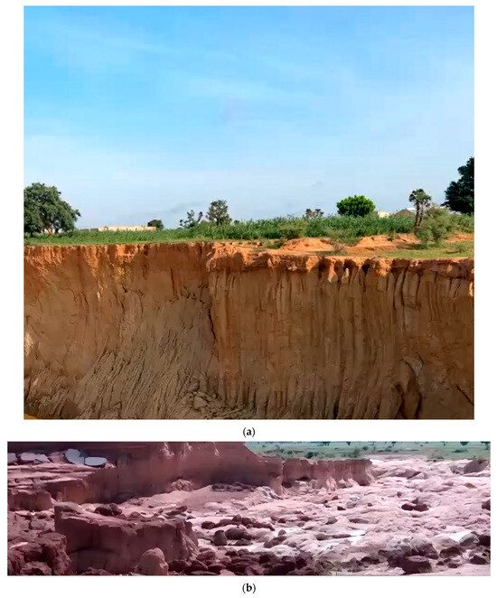 Moreover, the inter-annual rainfall variability adds another layer of complexity. Some years, like 2012 and 2018, show higher overall rainfall, suggesting more severe erosional stress. In contrast, years with lower rainfall might see reduced immediate erosion but could experience more pronounced wetting–drying cycles, exacerbating soil expansion–contraction behavior. Figure 3a–c show the damage to the earth material structure adjacent to downstream areas of the Tiga dam structure.