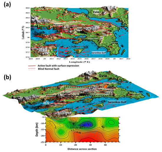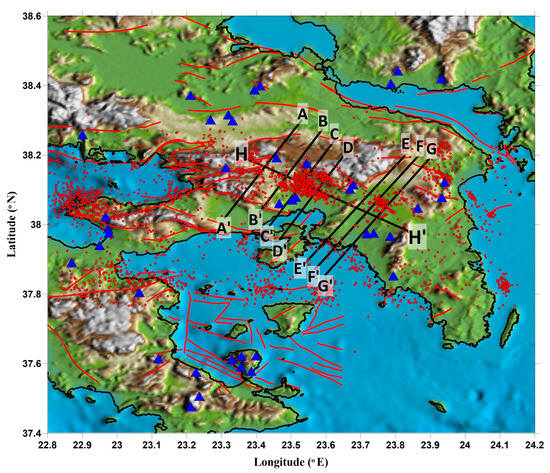 - Konstantinou, K.; Mouslopoulou, V.; Saltogianni, V. Seismicity and Active Faulting around the Metropolitan Area of Athens, Greece. Bull. Seismol. Soc. Am. 2020, 110, 1924–1941. [Google Scholar] [CrossRef]