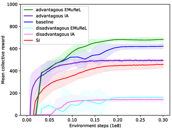 18]. The results demonstrate that agents trained by the EMuReL method can learn to cooperate more effectively compared with the IA and