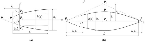 The geometries of double-parabolic taper beams truncated at the left end: (a) Parabola branches directed to the right; (b) Parabola branches directed downward.