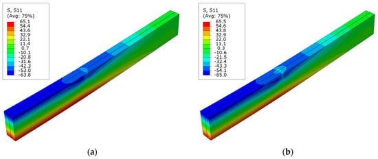 (a) Normal stress S11 distribution at ultimate load; (b) tensile failure of non-strengthened beam [16].