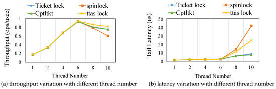- Liu, N.; Gu, J.; Tang, D.; Li, K.; Zang, B.; Chen, H. Asymmetry-aware scalable locking. In Proceedings of the 27th ACM SIGPLAN Symposium on Principles and Practice of Parallel Programming, Seoul, Republic of Korea, 2–6 April 2022; pp. 294–308. [Google Scholar]
