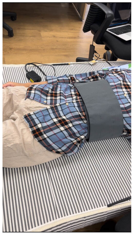 Monitoring the RR during sleep is critical for detecting potential health issues. Normal RR varies by body composition [29] and should remain consistent during sleep; deviations may indicate health risks like bradypnea or sleep apnea. RR, measured in bpm, is crucial for health monitoring. This study utilizes the Vernier Respiration Monitor Belt (illustrated in Figure 3), recognized for its accuracy in academic research, to provide a reliable RR measurement at a 4 Hz resolution. In parallel, the ESP32 logs CSI data at a 60 Hz resolution. We establish a mapping between 60 CSI data points and 4 RR data points per second to correlate the two metrics accurately. This exploration into using an accessible device like the ESP32 for sleep RR monitoring is unprecedented in current research.
