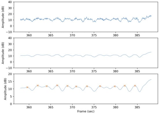 An important factor is the environment’s density, as illustrated by the Gaussian smoothing factor in Figure 7. If is set too high, the result can be too flat to be recognized as a pulse. Our investigations, detailed in Table 2, Table 3, Table 4 and Table 5, revealed that data collected in a larger room with many obstacles (Subjects 1–4) benefit from a higher . In contrast, data collected in a smaller room with limited obstacles (Subjects 5–8) prefer a lower .