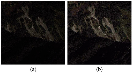 Applying fractional-order techniques to enhance gray and poorly textured landslide images can significantly enhance the quality of the dataset. This improvement is visually illustrated in Figure 8.