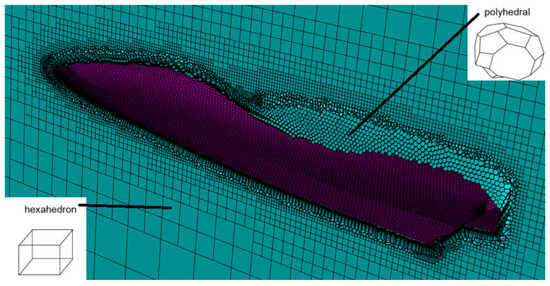 The Fluent Meshing software was utilized for the process of meshing, and the specific reason for this preference is its capability to generate meshes using the poly-hexcore option. The poly-hexcore method is a hybrid approach that combines a combination of polyhedral and hexahedral element types and effectively addresses specific requirements by employing those types of elements. The polyhedral and hexahedral element types are illustrated in Figure 2. The poly-hexcore approach proves particularly advantageous in aerodynamic and hydrodynamic investigations, offering benefits such as reduced element count, faster convergence, and improved accuracy [19]. It is a useful technique for meshing complex geometries with boundary layer approximation, just as in the present study.