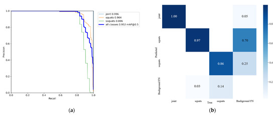 The precision represents the proportion of all true positive results in a positive sample that is tested, while the recall represents the model’s ability to correctly detect positive samples. Precision (P) and recall (R) are defined as follows.
