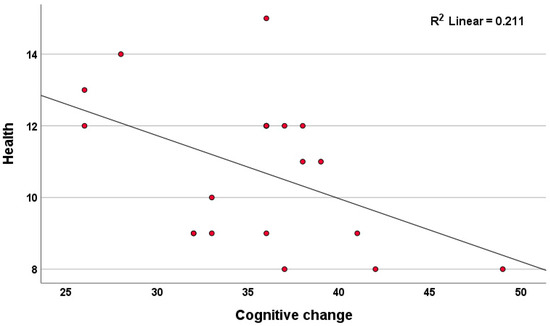 Scatter plot for the self-evaluated cognitive change scores and health status for the control group.
