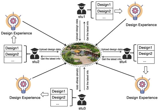 Taking the example of a student team designing a public landscape space, the team consists of four vocational high school students majoring in landscaping. Each student is responsible for designing one module of the public landscape space model (Figure 12). During the design process, each student can upload their design data to the digital twin platform at any time. The design data automatically generate a three-dimensional digital twin model for visualization. Consequently, as long as any student submits updated data, all students can instantly view the latest-generated landscape space model along with its detailed design parameters. They can even simulate its operation in different environments using the digital twin. Furthermore, every historical update state of the digital twin is meticulously recorded. Students can backtrack to any state in the design process and review the digital twin model parameters and performance at that state. The advantages and disadvantages of different design schemes can be easily discerned by comparing the parameters and performances of different versions of the digital twin, thus preventing conflicts in design philosophies among different designers. Additionally, comparing different versions of design schemes enriches students’ design knowledge and experience, continually enhancing their design capabilities. Digital twin technology significantly enhances communication and collaboration efficiency among students, facilitating real-time information sharing through online collaboration platforms, thereby improving design efficiency and quality. Moreover, the richness and flexibility of digital tools make it easier for students to express creativity and adjust solutions, thereby increasing the innovation and flexibility of design.