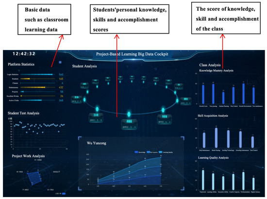 3. Summarize and expand after class. First of all, the system generates a detailed learning data report based on students’ learning data and completed works and visualizes the students’ learning situation. Teachers use these data to reflect on and summarize the lessons and evaluate the effectiveness of the teaching methods and learning content. Based on these data, teachers update and improve teaching resources to ensure the relevance and usefulness of their teaching materials and cases. Students view system-generated individual learning reports to understand their performance in the three areas of knowledge, skills, and literacy in the course, while the system provides feedback on individual students’ learning, including personalized guidance and suggestions for improvement, based on which students reflect and summarize their learning, identify their strengths and areas for improvement, and consolidate and expand their knowledge of the course. Students then make necessary corrections and refinements to improve the quality of their project work. Based on the students’ overall performance and specific feedback, teachers make subsequent instructional decisions, including adjusting teaching strategies, adding more classroom interactions, or modifying assessment methods to better suit students’ learning needs and enhance teaching effectiveness, as shown in Figure 17.