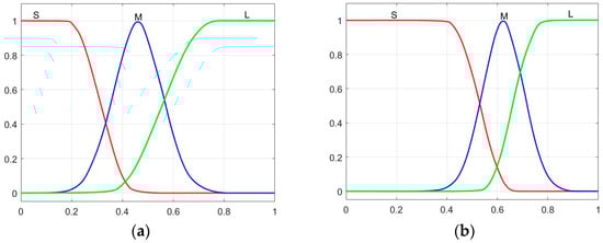 The fuzzy rules are mainly formulated based on the actual driving experience and the relationship between the input and the output variables, and the output of the fuzzy control is the power distribution coefficients of the motorized mechanism, which follows the control logic derived from the above control. The fuzzy subsets of the input variables of the fuzzy controller and accelerator pedal opening are defined as {L, M, H}, which represent {low, medium, high}. The fuzzy subsets of the vehicle speed, v, are defined as {L, M, H}, which represent {low, medium, and high speeds}; the output variable is the power distribution coefficient of the motorized mechanism, k, and the fuzzy subsets are defined as {L, M, H}, which represent {low, medium, and high}. A total of nine fuzzy rules are formulated, as shown in Table 1.