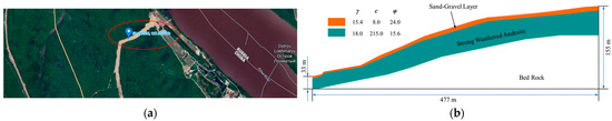 (a) Locations of the monitoring slope case. (b) Stratigraphic model of the monitoring slope [83].