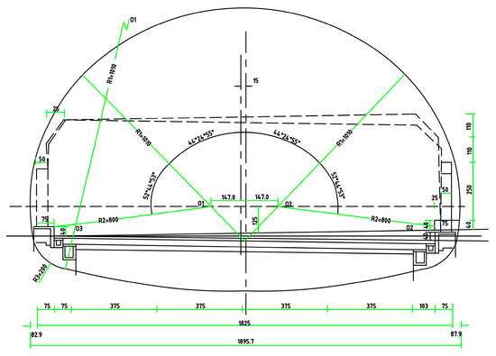 Schematic diagram of tunnel construction limits and internal outlines (unit: centimeter).
