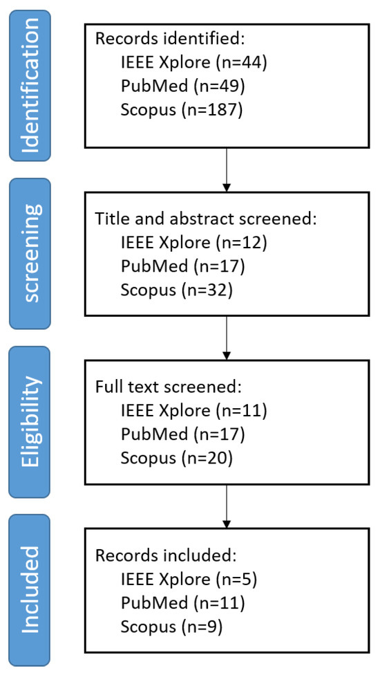 A total of 280 studies were retrieved from PubMed [17], IEEE Xplore [18], and Scopus [19]. After duplicate removal and screening of titles and abstracts, 48 studies met the inclusion and exclusion criteria. Full-text screening resulted in 25 studies being included in this review. Figure 2 illustrates the flow diagram showing the number of papers identified at each step.