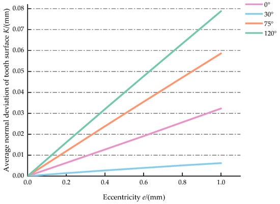 It is revealed in Figure 13 that the average normal deviation of the tooth surface increases linearly with the increase in eccentricity when the eccentric angle is determined.