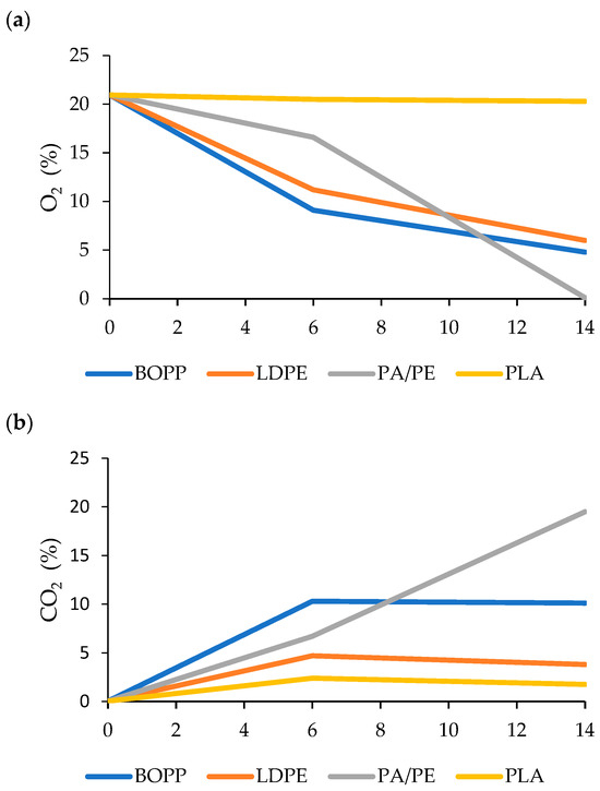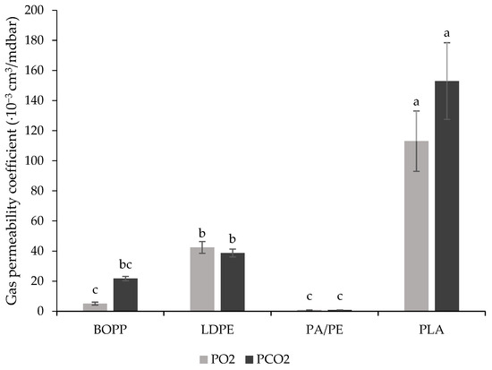4.1. Physicochemical and Barrier Properties of Used Packaging Materials