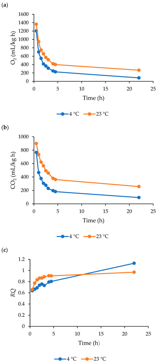 - Kandasamy, P. Respiration rate of fruits and vegetables for modified atmosphere packaging: A mathematical approach. J. Postharvest Technol. 2022, 10, 88–102. [Google Scholar]
