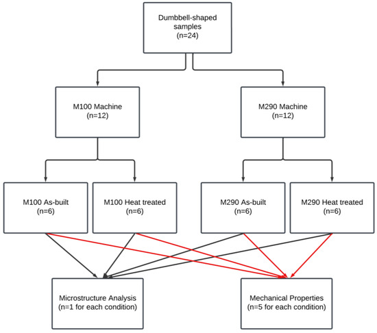In this study, the degrees of elongation of the M100 samples significantly exceed those of the M290 samples in the as-built and heated states; therefore, the null hypothesis was rejected.