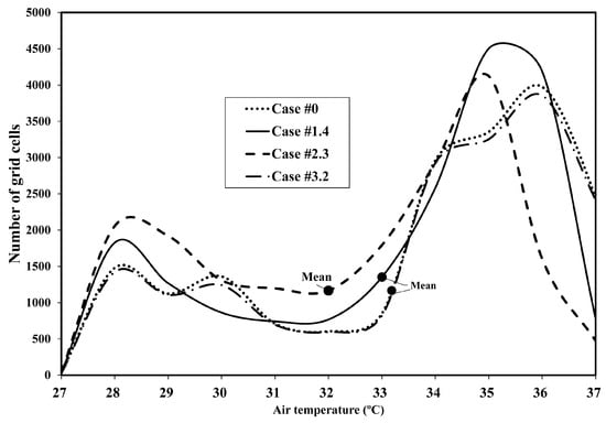 Air temperature frequency of grid cells as a function of the case.