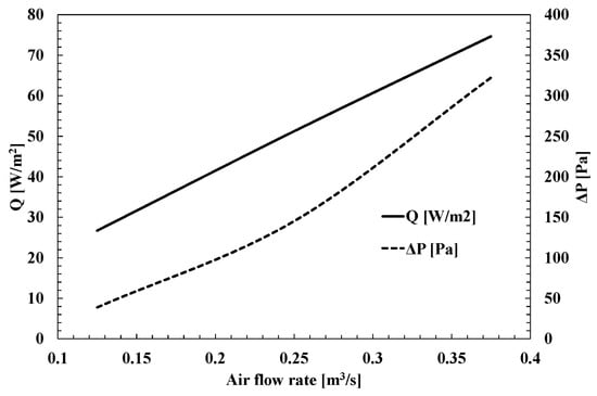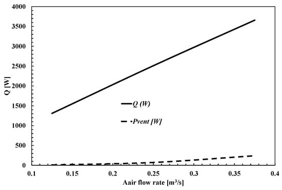Variation of heat flux and ventilation power with airflow rate.