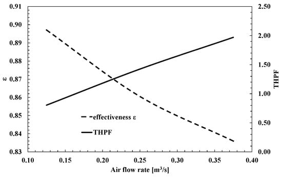 Variation of thermal efficiency and THPF with airflow rate.