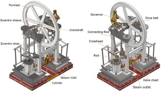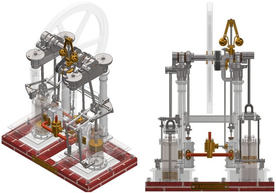 - Two-Cylinder Entablature Steam Engine with Parallel Motion Crosshead. Available online: https://modelengineeringwebsite.com/Muncaster_2-cyl_entablature.html (accessed on 26 July 2024).