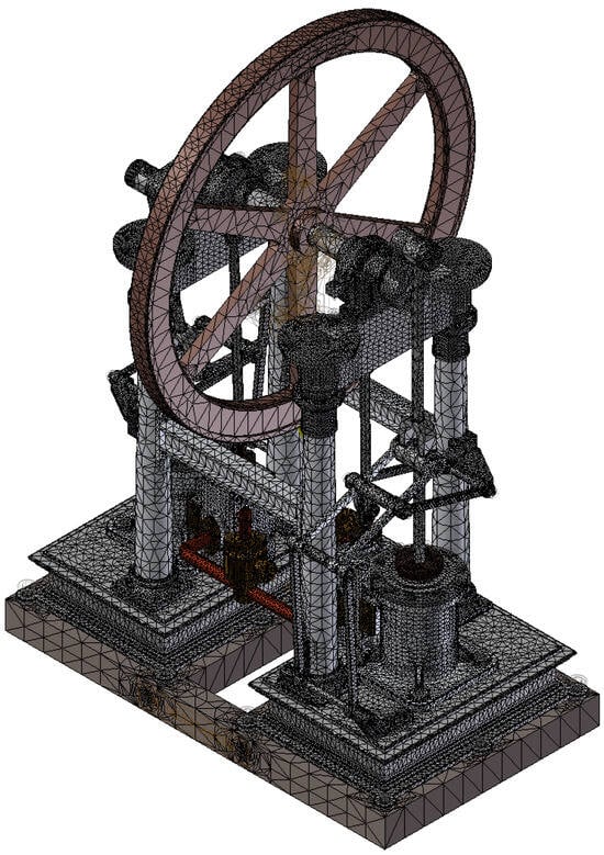 - Rojas-Sola, J.I.; Barranco-Molina, J.C. Study of the mechanical behavior of a single-cylinder horizontal steam engine with a crosshead trunk guide through the finite-element method. Appl. Sci. 2024, 14, 5878. [Google Scholar] [CrossRef]