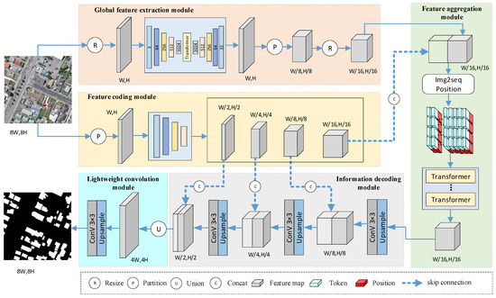 The network structure of our proposed method is depicted in Figure 1 and comprises five key components: global feature extraction module, feature coding module, feature aggregation module, information decoding module, and lightweight convolution module.