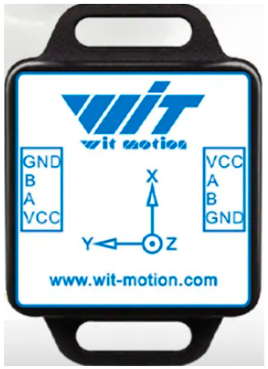 In this study, the focus is not limited to positioning and ranging sensors for horizontal and vertical directions; it also encompasses a range of angular data generated by the rotational movement of the industrial robot’s base, the forward and backward tilt of the first and second arm sections, the rotation and swing of the wrist, and the wrist joint’s free rotation. Hence, the implementation of attitude sensor devices is indispensable. For this purpose, the WT901C-485 model nine-axis sensor from WitMotion Intelligent Technology Co., Ltd., Shenzhen, China, was employed. An actual image of this sensor is shown in Figure 6.