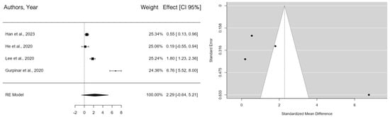 Forest plot and funnel plot of the effectiveness of probiotics on halitosis in comparison with the placebo group. Values of VSC levels at 4 weeks.
