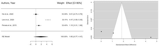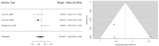 The meta-analysis was carried out using the software Jamovi version 2.2.5 with the add-on MAJOR. A random-effects model was used. The mean difference (M) and the standard deviation (SD) were used to assess the variable probiotic with a 95% confidence interval (CI).