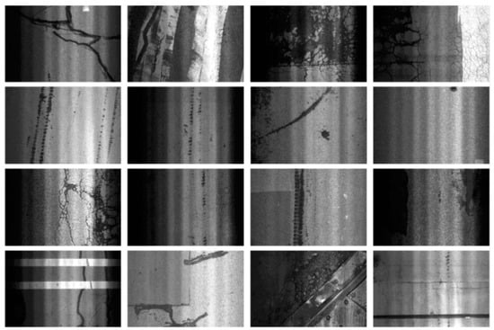 In this project, we utilized the CQU-BPDD dataset [27,28], which comprises a total of 60,059 images segmented into training and testing sets based on specific criteria to ensure comprehensive model evaluation. The training set includes 5137 images of diseased pavements, covering a diverse range of distress types, and 5000 images of normal pavements, facilitating balanced training of our deep learning models. The remaining 11,589 diseased and 38,330 normal pavement images constitute the test set, rigorously evaluating the model’s effectiveness and accuracy under diverse conditions.