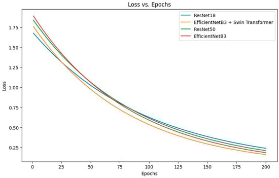 To further explain the model training loss in more detail, Figure 6 depicts the variation in training loss over epochs for the different convolutional neural network models used in this study, showcasing their convergence patterns and relative performance.
