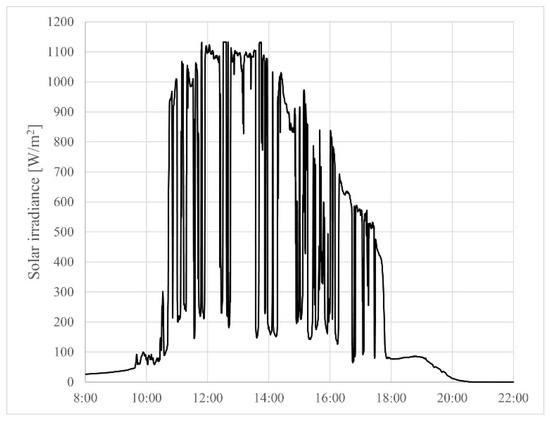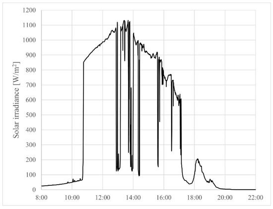 Measured values of the solar irradiance on 26 May 2024, between 8:00 and 22:00.