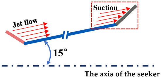 In order to further optimize the flow field structure near the optical window, a suction device is introduced at the compression corner adjacent to the window end, aiming to investigate whether it can enhance the light transmission performance of the flow field. The blow–suction control diagram is depicted in Figure 4 below.