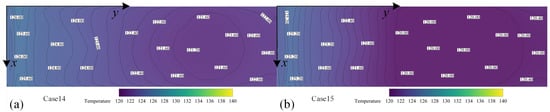 Comparison of optical window temperature distribution (a) without MVGs and (b) with MVGs under blow–suction cooling control at Ma = 3.