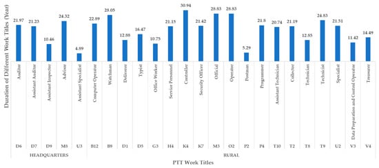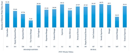 Descriptive statistical data were sought to be obtained by taking into account the years of service of the staff employed in the PTT under the titles they hold. In addition to taking into account the different title years of different staff, the service years of the same staff belonging to different titles were also taken into consideration, and the average working time of the staff in their titles is presented in Figure 3.