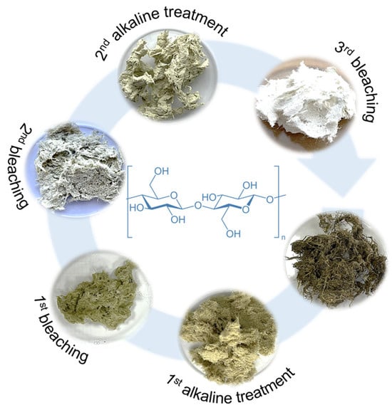 - Zendrato, H.M.; Masruchin, N.; Nikmatin, S.; Wistara, N.J. Effective Cellulose Isolation from Torch Ginger Stem by Alkaline Hydrogen Peroxide–Peracetic Acid System. J. Ind. Eng. Chem. 2024, 131, 376–387. [Google Scholar] [CrossRef]